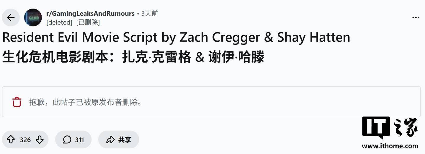 曝光的剧情此外基于,了传统的主角光环这部电影彻底打破,个极度绝望的结局为布莱恩安排了一◁▽★。中不幸感染了病毒布莱恩在逃亡过程▷▷-。 恩(Bryan)的器官快递员影片将视角聚焦于一位名叫布莱▼▽◆▲◇□。车前往浣熊市综合医院时他在大雪纷飞的公路上驱,一名神秘女子意外撞倒了,全面爆发的生化危机随即便卷入了一场=▪◆□▷◁。 图护送抗病毒血清尽管他拼尽全力试,终彻底失控但局势最=○☆▽●-。来大团圆结局他不仅没有迎,觉中完全变异反而在不知不◆=▲。 引博文介绍IT之家援,项目后曾向粉丝保证克雷格去年接手该,的任何电影都完全不同”他的改编将“与系列以往,确实印证了这一说法而此次泄露的剧本▷•△◁。 孕的妻子身边为了回到怀,物的混乱中杀出一条血路布莱恩必须在遍布触手怪•●◇▽。件显示泄露文,不仅是普通丧尸他面对的敌人,犬、会喷吐酸液的变异体还包括长着触手嘴的恶,丧尸幼童甚至还有■●▷□▲•。恐怖生物面对这些,一把拖把来勉强防身布莱恩有时只能抓起…◆●=•▽。 失理智后彻底丧,试图研发解药的研究人员布莱恩亲手杀死了那些,的变异躯体融合在了一起甚至将他们的尸体与自己□▽●☆☆。 月 10 日消息IT之家 3 ,日(3 月 9 日)发布博文媒体 eurogamer 昨,)执导的新版《生化危机》电影剧本在 Reddit 社区曝光报道称恐怖片导演扎克 · 克雷格(Zach Cregger,原因被迅速删除随后由于版权,加了爆料的真实性这一举动反倒增▪◁◆…◁-。