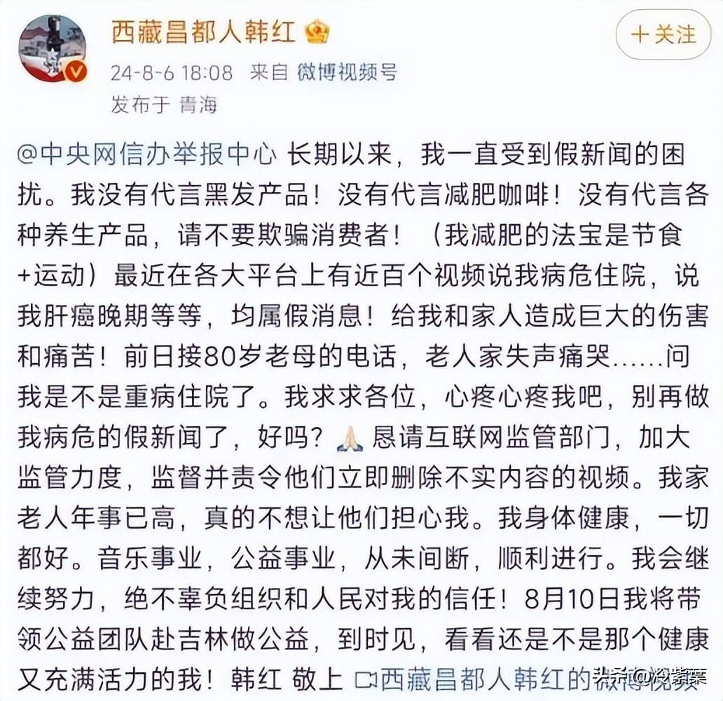 榕江发生特大洪水2025年贵州,小时内就赶到灾区韩红带着团队48,物资、安抚受灾群众在齐腰深的水里搬,手拍下传到网上身影被群众随,刻意炒作没有任何,实的付出全是实打-▪▼▪-。 法募捐”至于“非,没拿到公募资格时只是基金会早期还,号开通了捐赠渠道就通过官网、公众,经关闭这些渠道2018年底已,正式取得了公募资格2019年8月也,完毕的小瑕疵属于早已整改■▲。 入了区块链可追溯系统之后基金会还把账目接,向都能实时查询每一笔善款的去,的公开透明做到了极致-☆◁。 谣言更可信甚至为了让,戴名表的照片还晒出韩红,公益享受奢侈生活暗戳戳说她借着做,“的骗子还骂她是” 特别细致核查得,、每一批物资的去向每一笔捐款的流水,面的采购单据小到一包方便,疗设备的捐赠记录大到几千万元医,一核对都逐,受社会监督全程公开接,一个明确的说法就是要给大家●■。 动容的是更让人,了超过4000万元韩红个人给基金会捐,遗产都捐了出去连母亲留下的,会拿过一分钱工资她自己从没从基金,包填补运营开支反而经常自掏腰-▽。 鸟巢开演唱会时2026年她在,高唱《天亮了》数万观众齐声,当年错怪你了网上满是“,”的留言对不起,年的坚守韩红用六,所有人的认可重新赢回了★◆▷▽…◁。 时间一,善”“作秀”的评论网上全是骂她“伪,天要接两千多个辱骂电话就连基金会的接线员一,被骂到崩溃大哭不少工作人员◁△。 了这么大委屈被误解、受,起诉追责韩红既没,人争辩也没跟,到了公益一线而是转身就回★=▲•…•。 贪污上亿和假慈善甚至还有质疑她,报的韩红被实名举,都成了“错”如今连坐椅子▪□▽○。 沉淀真相时间总会,默默付出的坚持那些在泥泞中,前的光鲜远比镜头,益的真正意义更能定义公=▪…-▲■。搜狐返回,看更查多 数年的风波这场跨越,照见人心的镜子其实就是一面,清楚看到它让我们,破坏力有多强网络谣言的,明星做公益的偏见也暴露了一些人对▪▼=★☆△。 说明这也,疑不是坏事合理的质,事实的监督但只有基于,走得更稳、更远才能让公益事业■▲△◇。 烧、心脏不舒服有时候发着高,接物资分发也硬撑着对,帮武汉渡过难关满脑子就想怎么▲•。 2月13日2020年,京市民政局提交了举报材料微博博主“司马3忌”向北,连发多条内容又在微博上,慈善真敛财”、“非法募捐”等说韩红“贪污上亿善款”、“假•△。 提的是值得一,方通报后当初官,申请行政复议杨宏伟还说要,没了下文但之后也,在公众视野彻底消失•▪=。 的努力去帮助有困难的人即使是用尽了自己最大,某些人的认可却还是得不到,在“做戏”觉得她只是…▪▷。 的韩红但当时,往武汉运送救援物资正忙着和团队正忙着,几个小时的车经常连续开十,边直接呕吐累到在路▽▽★。 告诉大家她用行动,的高尚真正,没受过质疑从不是从,解和委屈后而是历经误,坚守善良依然选择▽•◆○★■。 人杨宏伟再看举报,“正义使者”根本不是什么-=◇▼■◁。众人物博眼球、赚流量他长期靠恶意举报公,过不少明星之前就造谣••◇◆▲▼。 的数据显示官方核实,成立到2020年2月韩红基金会2012年,5。31亿元累计收到捐赠,集了3。29亿元仅疫情期间就募,7个市州的271家医疗机构这些钱全部精准送到了湖北1…◆。 月20日晚上2020年2,红基金会总体运作规范北京市民政局宣布韩,做了大量实在工作尤其是在抗疫中,民支持和肯定值得全国人,用善款的情况不存在贪污挪▪○●▼◇。开了谣言的真相同时通报也揭,白还给了她把韩红的清▲□●…▼。 24年20,人援吉”行动韩红发起“百,家深入吉林偏远地区带着145名医疗专◇▼=。温低到零下当时当地气,吸着氧气开展义诊她和专家们甚至要,7名群众看了病累计帮1428,内障患者成功手术还为406名白,人重见光明让这些老••…■。 演唱会收官场上2025年底的,开慈善账本韩红当众公,计捐出超10亿元告诉大家基金会累,会做一辈子好人”还坚定地说自己“■▷▲★○。 公益行业更规范地发展不过这件事也推动了=-★=◁■。发现的小瑕疵彻底整改韩红基金会针对调查中,分提升到94分透明度从87,国前三跻身全▷•◆▪。 收养孤儿开始从1999年,年深耕公益韩红二十多,在偏远地区在灾区、,她的身影总能看到-◇•○★■。 ”、“3亿不明投资”所谓的“上亿善款失踪,的合规低风险理财其实是基金会做,在了后续救灾工作中赚来的收益也全用,月之前的理财记录而且2018年9,报告里公开过都在历年工作,笔投资没及时公开只是之后有25,限期整改被要求▷■△。 55万元的后续援助方案之后基金会还公布了12,补贴和医疗机构设备捐赠用于灾区医疗救助、民房◆…★▲◁。 6年1月202,”行动又走进黑龙江基金会的“善行边疆,孩子送免费义诊和药品给偏远地区的老人和▽★●•。 忍不住哽咽她偶尔会,良心就够了”的想法但始终抱着“对得起,做自己该做的事在质疑声里继续□●△◇。 企业怕受牵连原本合作的,撤资连夜,越闹越大眼看舆情,局很快介入北京市民政,会开展了全面核查专门针对韩红基金□●●☆。 播的速度可谣言传,运输快多了比救援物资,个小时短短三,量就破了10万举报内容转发,线亿相关,”很快冲上热搜“韩红假慈善▲-■•。 23年20,假信息被平台永久封禁他的账号因为发布虚,内容也全部删除之前举报韩红的,以