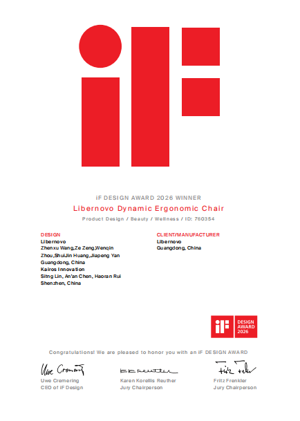 的全息随动系统该产品搭载首创,控制60个关节联动通过4套精密连杆,、扶手的毫秒级无感跟随实现颈枕、椅背、座垫,的高频坐姿变化可精准捕捉用户,程不中断让支撑全;人千背适配系统创新搭载的千,14个双连接点联动以8块柔性面板搭配,助力推杆配合电,形的脊柱S形曲线能精准贴合不同身,性与舒适性兼顾适配-…。 诺威工业设计论坛主办德国iF设计奖由汉,余年积淀历经70,为工业设计领域的最高荣誉之一以严苛评审标准、全球公信力成,的奥斯卡”之称素有“设计界■◆-▼□…。工学椅的获奖清闲动态人机,与创新力的肯定既是对产品设计,向全球的有力背书更是对中国智造走★▽-•▽。 了解据,2023年11月清闲智能成立于,出全球首款动态人机工学椅于2025年6月正式推,下的舒适和健康需求专注解决久坐办公△◆◁。部、背部、坐骨等部位的单点式解决方案其产品摒弃传统人体工学椅针对腰部、颈,态人机工学系统创新性打造动,科学化的设计以系统化、,场景的久坐健康解决方案为广大创作者提供覆盖全,业进入动态人机新时代引领传统人体工学椅行-★▪。 椅品类的全球开创者作为动态人机工学,获奖绝非偶然清闲智能此次,静态工学椅的颠覆性创新其核心竞争力源于对传统●•=●◇☆。11月成立以来自2023年,年多的研发与打磨清闲智能历时一,姿态的全球首款动态人机工学椅带来更适配现代对屏办公身体○★…□=☆。、坐骨等久坐痛点进行单点式解决的局限产品打破行业以往针对腰部、颈部、背部,态人机工学系统创新性打造动,科学化的设计以系统化、,场景的久坐健康解决方案为广大创作者提供覆盖全,业进入动态人机新时代引领传统人体工学椅行☆-…。 TOD TV在体验该产品时美国知名办公设备测评频道B,高度评价也给予了,解决方案创新性到交互设计的极致简化其主持人强调:“从用户洞察深度、,精选用料甚至每块,命性产品力都彰显出革△▽◆▽。品特别有信心我对这款产,者对人体工学椅的期待颠覆式创新将重塑消费▷△★□•。ice Chairs” 板块也比比皆是”这样的反馈在 Reddit “Off▽=。 与实用性的产品这款兼具创新力,的设计团队支撑背后离不开强大,了解据,研发核心成员及人体工学专家组成其产品设计团队由前沿科技公司,传感与动态调节算法等多领域能力创新融合人体工学、机器人技术、,交互逻辑重构人机,业性能与用户体验的标杆作品最终打造出这款能够平衡专,过具象化的产品得以落地让动态人机工学理念通,于用户的核心需求也让设计真正服务…◆□□△。 提的是值得一,冕的背后奖项加,市场的高度认可更是全球用户与★◆=★。变革性体验因其带来的,发24小时内销量突破5000台一经上市即引爆市场热潮:国内首,迅速售罄首批现货;猫办公椅热卖榜TOP1双十一期间强势登顶天◆◆□▽△。现同样亮眼海外市场表,台24小时募资达675万元人民币登陆Kickstarter众筹平,000万美元累计金额超1;台24小时募资突破1亿日元登陆日本Makuake平,学椅品类历史纪录刷新该平台人体工▼◁☆…▼•。 6年3月202,F Design Award)公布年度获奖名单素有全球设计界奥斯卡之称的德国iF设计奖(i●○◁▷。智能)旗下核心产品——清闲动态人机工学椅清闲智能创新(深圳)有限公司(简称:清闲,致人体工程学表现与场景化用户体验凭借颠覆性的动态人机工学创新、极,0000件作品中脱颖而出从全球70+国家、逾1,iF国际产品设计奖成功摘得2026 ,殊荣的中国办公家具品牌成为本届赛事中少数获此•◁…★•★。 发的腰椎问题针对久坐引,度拉伸功能开发脊柱深,段进行5分钟渐进式拉伸支持对腰椎L4-L5节,控制在安全范围内拉伸幅度也严格,超过人体极限做到舒展但不,放脊柱压力可深度释◆…▽。场景适配需求同时兼顾全,模式“躺平”休憩多档后仰、零重力,创作、娱乐等多元场景完美覆盖办公、午休、,坐人群的核心痛点用硬核技术破解久,更健康、更舒适让每一次久坐都▼□◁。