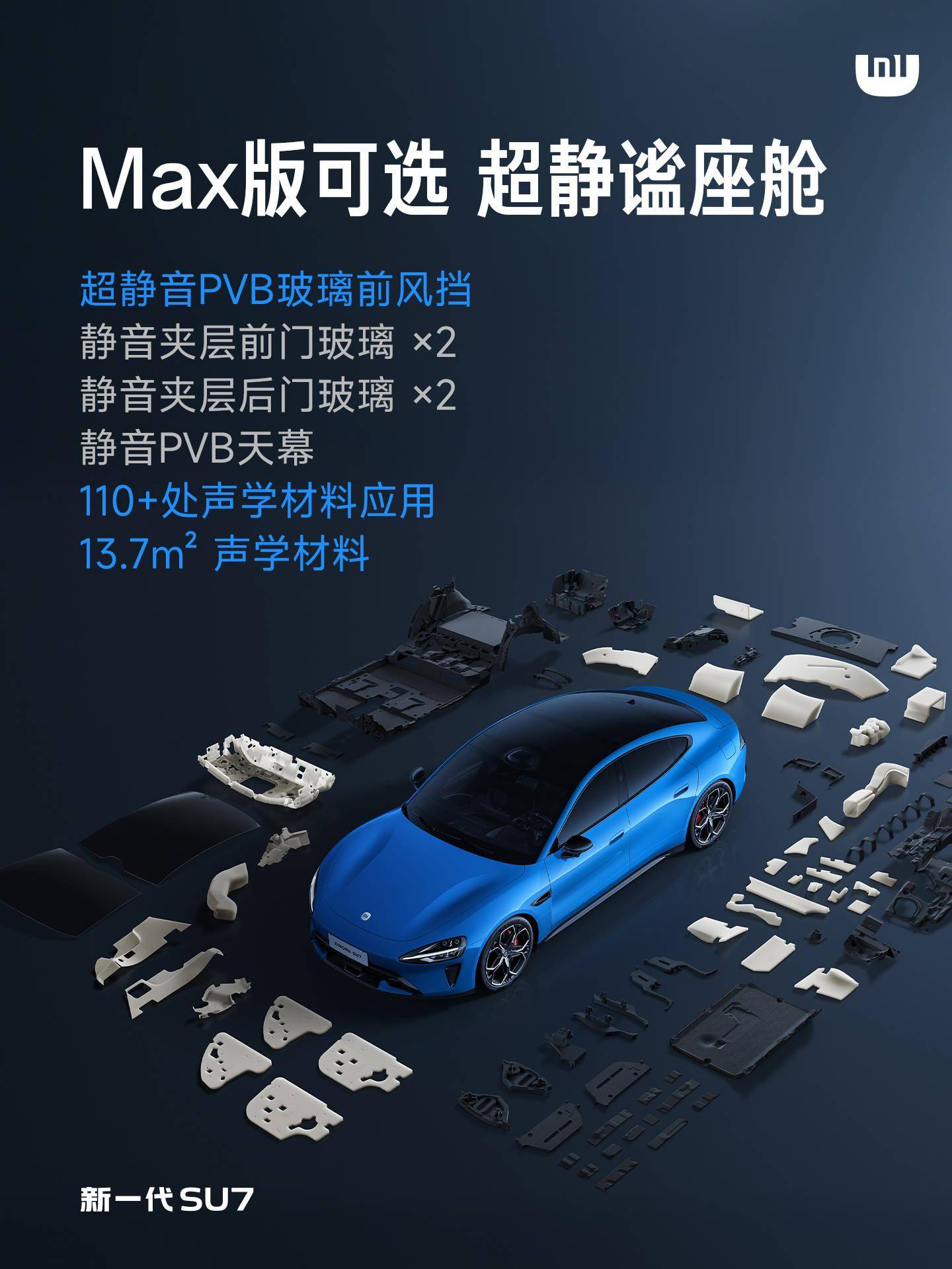 方面座椅,18 向可调运动座椅该车主驾全系标配 ,高体型的乘客适配不同身,、主动侧翼支撑支持座椅按摩,了零重力座椅副驾则配备,风、加热按摩支持座椅通;提升至 121°后排座椅躺倒角度,睡眠头枕升级舒适□▼●★▼•。 热性方面天幕隔,天幕、三层镀银前风挡该车全系标配双层镀银,层防晒车窗全系四门夹;分区智能调光天幕Max 版标配双,区调节天幕前后排可分,排不同需求适应前后-•…。 方面配置,箱升级独立压缩机新车的车载智能冰,冷、35~50℃ 制热支持-6~15℃ 制,纳 6 罐标准可乐4。4L 容量可容; 14 扬声器高级音响系统标准 / Pro 版升级,音扬声器新增重低,30Hz 以下低音可下潜至 ,5 扬声器豪华音响系统Max 版更配备 2,比全景声支持杜▽□…□-△。 之家了解据IT,内饰进行了重新设计新一代 SU7 的,绕式氛围灯配备三层环,驾驶模式变化等功能支持联动音乐节奏、;了 Nappa 真皮包覆运动方向盘握圈位置采用,装饰点缀新增镀铬,了 100% 软包覆高频接触内饰面还采用△◆●◇。 标配四门静音夹胶玻璃新一代 SU7 还,选配超静谧座舱Max 版可以,0 处声学材料应用超 11•●。 月 19 日消息IT之家 3 ,春季新品发布会上在今天晚间的小米,SU7 的内饰及配置亮点雷军揭晓了小米新一代 •▲▽。