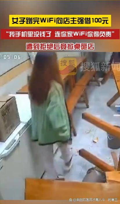 太离谱!陌生女蹭WiFi后借钱遭拒掀翻桌子店家报警网友:建议永久拉黑